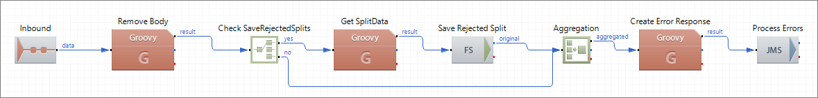 Saves the rejected split files to a file system folder located at ${ErrorContextPath}/rejected (the property ErrorContextPath is defined in the environment of the profile). |