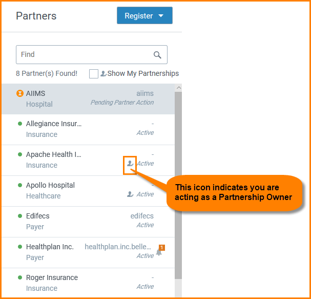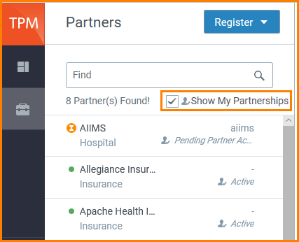 You can view the partnerships for which you are the owner by selecting the "Show My Partnerships" check-box in the Partners module.